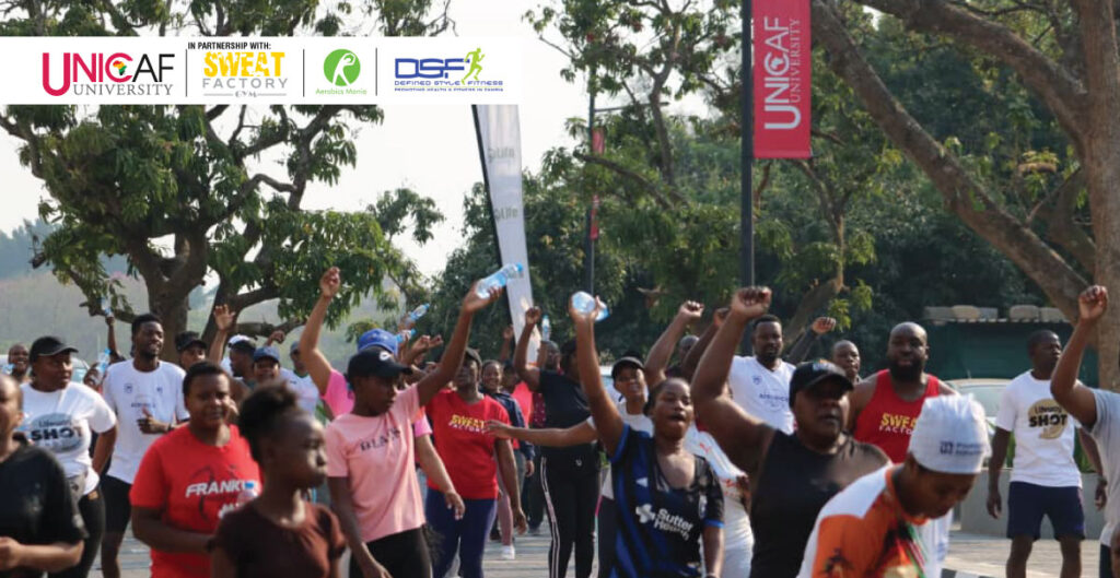 Unicaf University, Zambia, in partnership with Sweat Factory, Aerobics Mania and Defined Style Fitness, proudly hosted the highly anticipated Aerobics Mania event on 21st September 2024. The event, led by renowned fitness instructor Makungo Muyembe, attracted over 300 participants, turning the morning into an energetic display of community spirit, health and fitness.